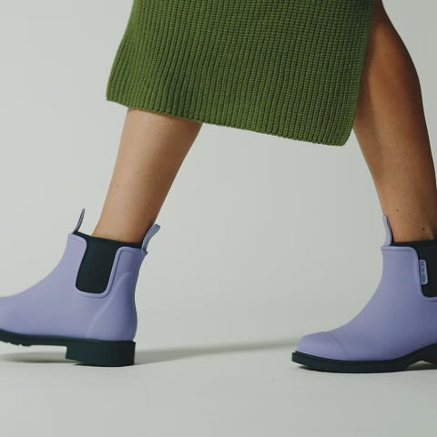 The Lavender & Navy Bobbi Boot was inspired by the flower we all love so much, our refreshingly fashion-forward Lavender boot brought a bright yet subtle pop of colour to any outfit with a bright lilac outer and dark navy blue neoprene lining.