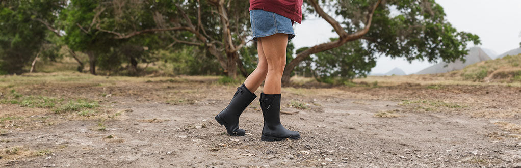 Tall Wellington boots, like our Darcy and Fergie boots, will reach mid-calf or knee height. We love our taller wellies because they provide additional protection to your feet and ankles from puddle splashes while keeping you snug and warm on even the chilliest days out. These gumboots add a utilitarian flair to any outfit and are perfect for tucking your cosy leggings and stylish jeans into.
