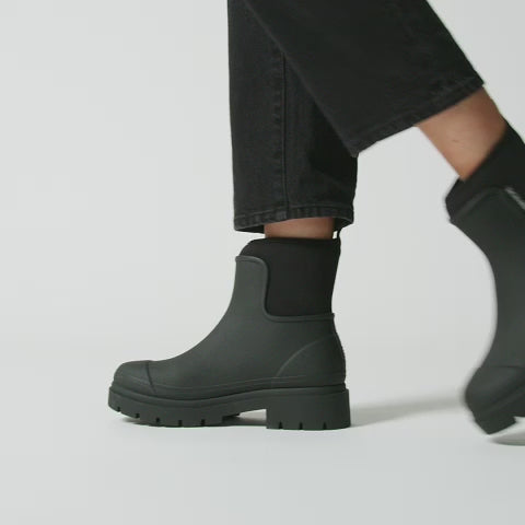 The Tully Boot’s distinct silhouette is a fashion forward take on the classic gumboot! Playful and urban; Tully nods to 90s nostalgia with a chunky platform-style sole and an extended, wrap around neoprene cuff.