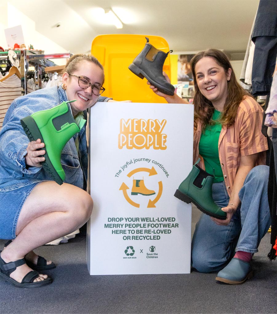 Do you have some Merry People Boots you no longer wear? Our brand new Recycling Program is the perfect sustainable solution! Merry People has partnered with Save Our Soles and Save the Children so you can donate your Merry People shoes to be recycled into mats and flooring, or sold second-hand at Save the Children, with all proceeds going to raise vital funds for children across the globe.