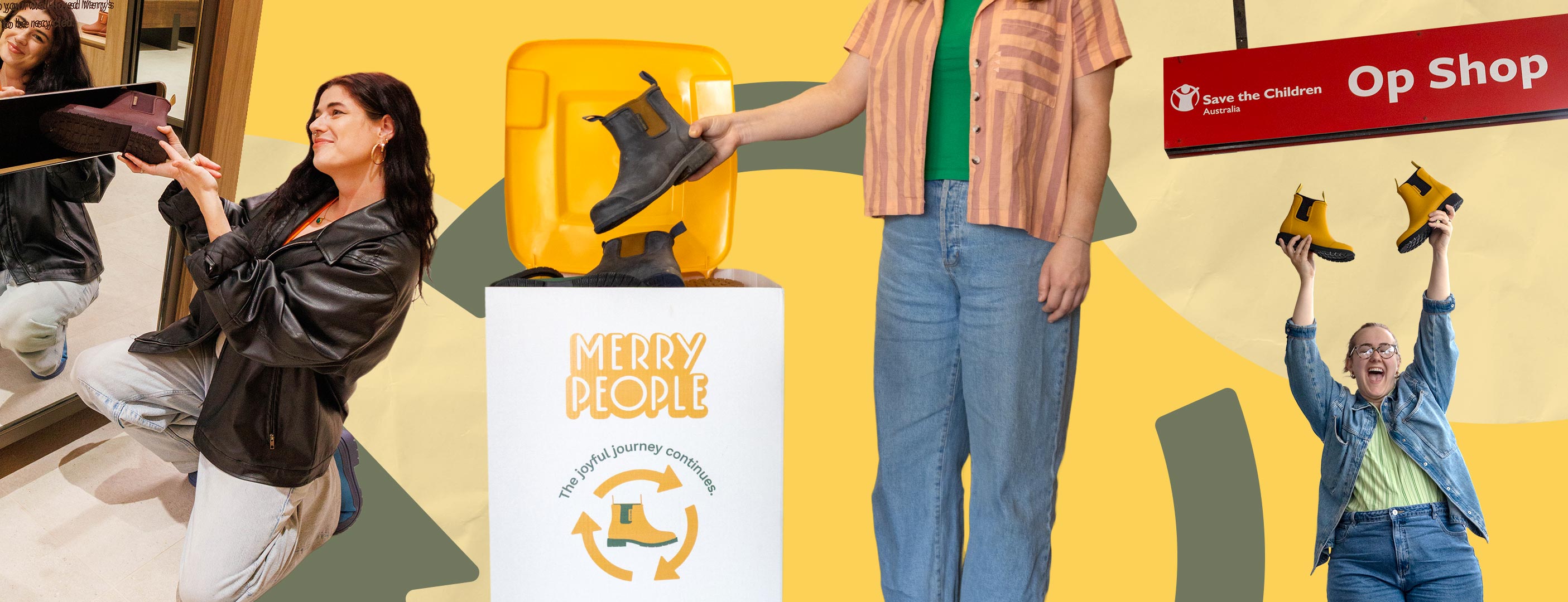 There are eight selected Save the Children Op Shop locations across Australia where you can find Merry People bins to drop off your boots, clogs and sandals.