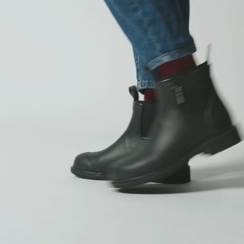 The perfect everyday rain boot. Our best-selling Bobbi Boots blend fashion and function with a quality natural rubber outer and a cushy 4mm neoprene lining. The Merry People Black & Black Bobbi Gumboots are perfect for all-day wear - working in the garden, walking the dog at the park, exploring the woods with your kids, dancing the night away at an outdoor festival, or even at your wedding!